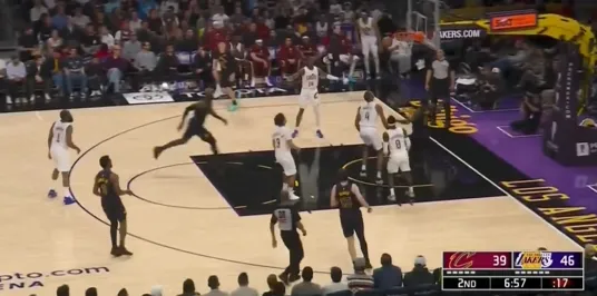 比赛第二节,詹姆斯送出空接妙传,艾顿起跳放篮磕到篮筐前沿。